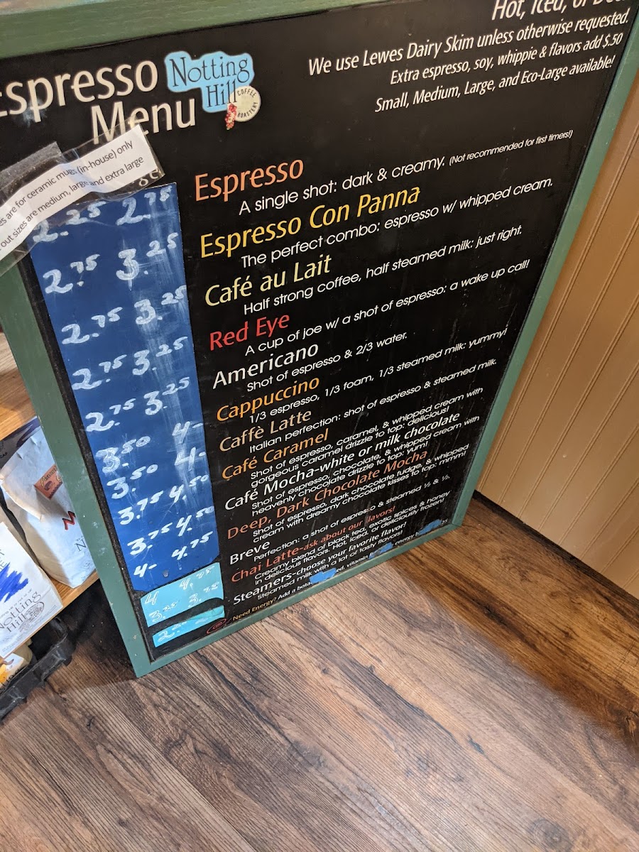 Lewes Bake Shoppe & Notting Hill Coffee Roastery Menu